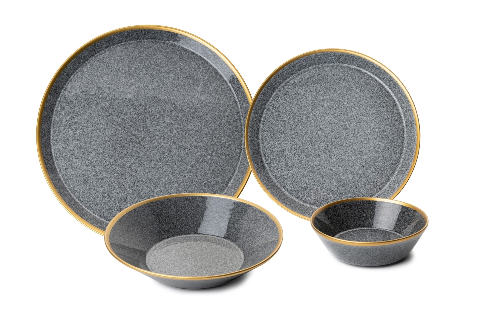 16-delni jedilni komplet, antracit/zlata/porcelan