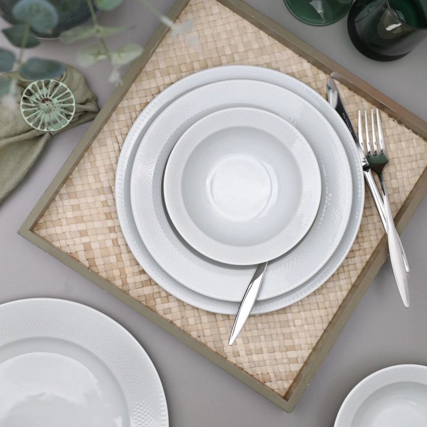 • Eleganten komplet jedilnega posodja, primeren tako za vsakodnevno postrežbo kot za praznične priložnosti.