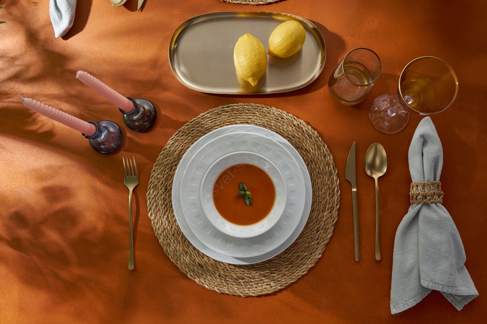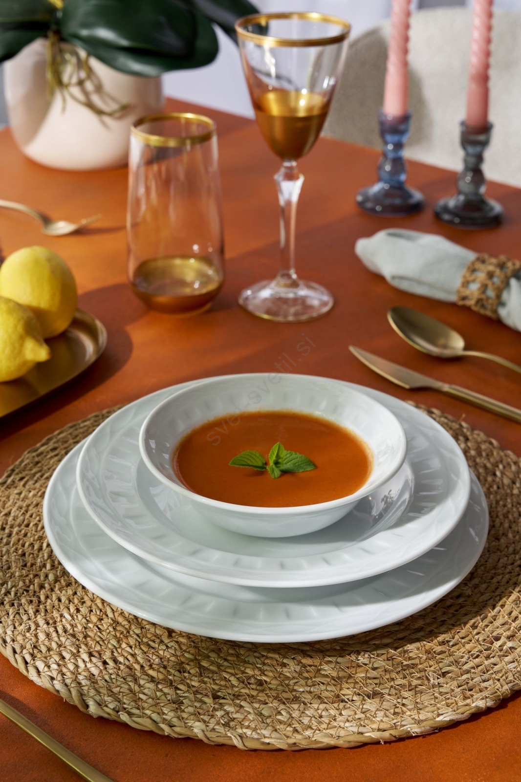 • Krožnik: 23 x 23 x 3 cm (6 kosov).