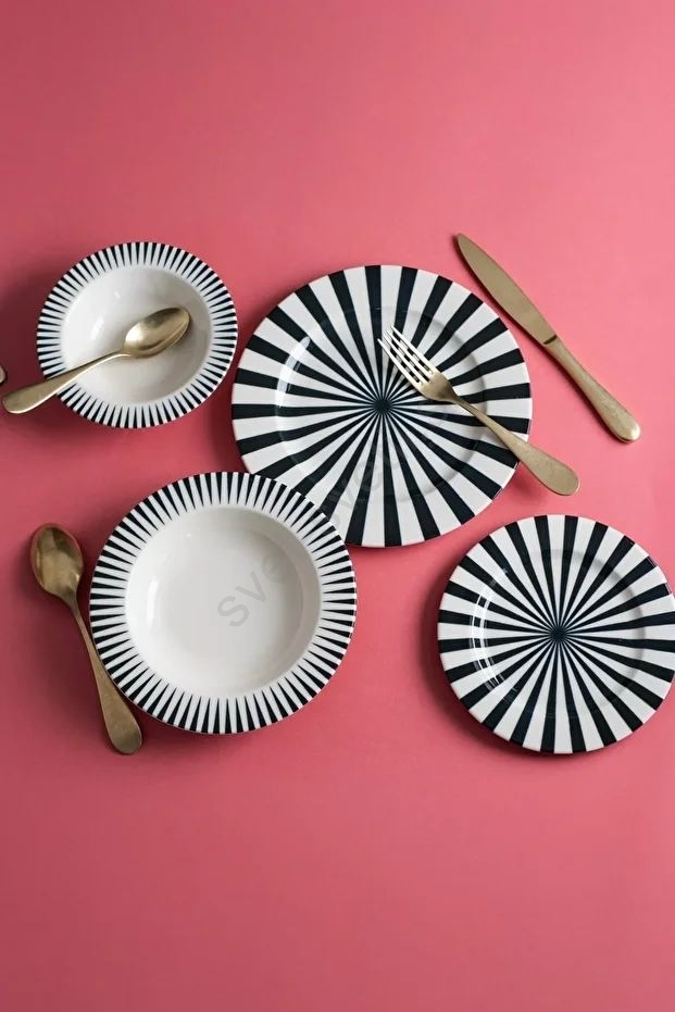 • Jedilni komplet, 4 kosi, črno-beli porcelan