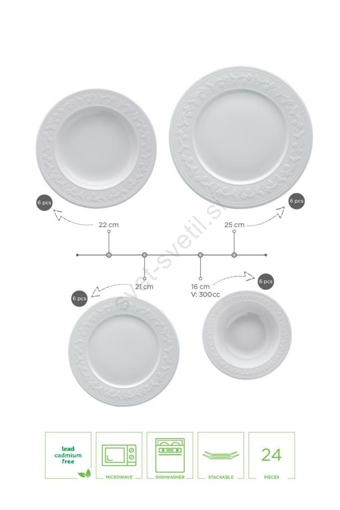 • Krožnik za sladico: 21 x 21 x 2 cm (6 kosov).