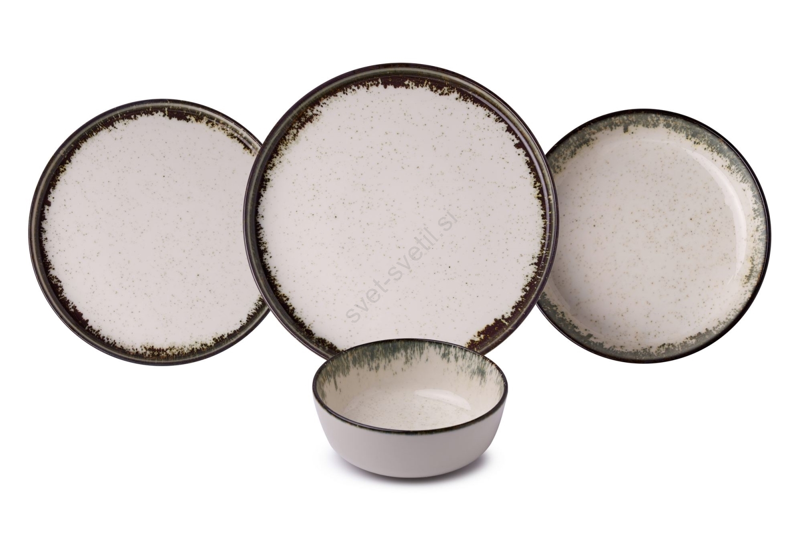 24-delni jedilni servis, bel/rjav, porcelan