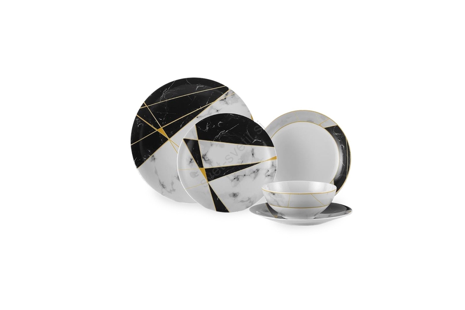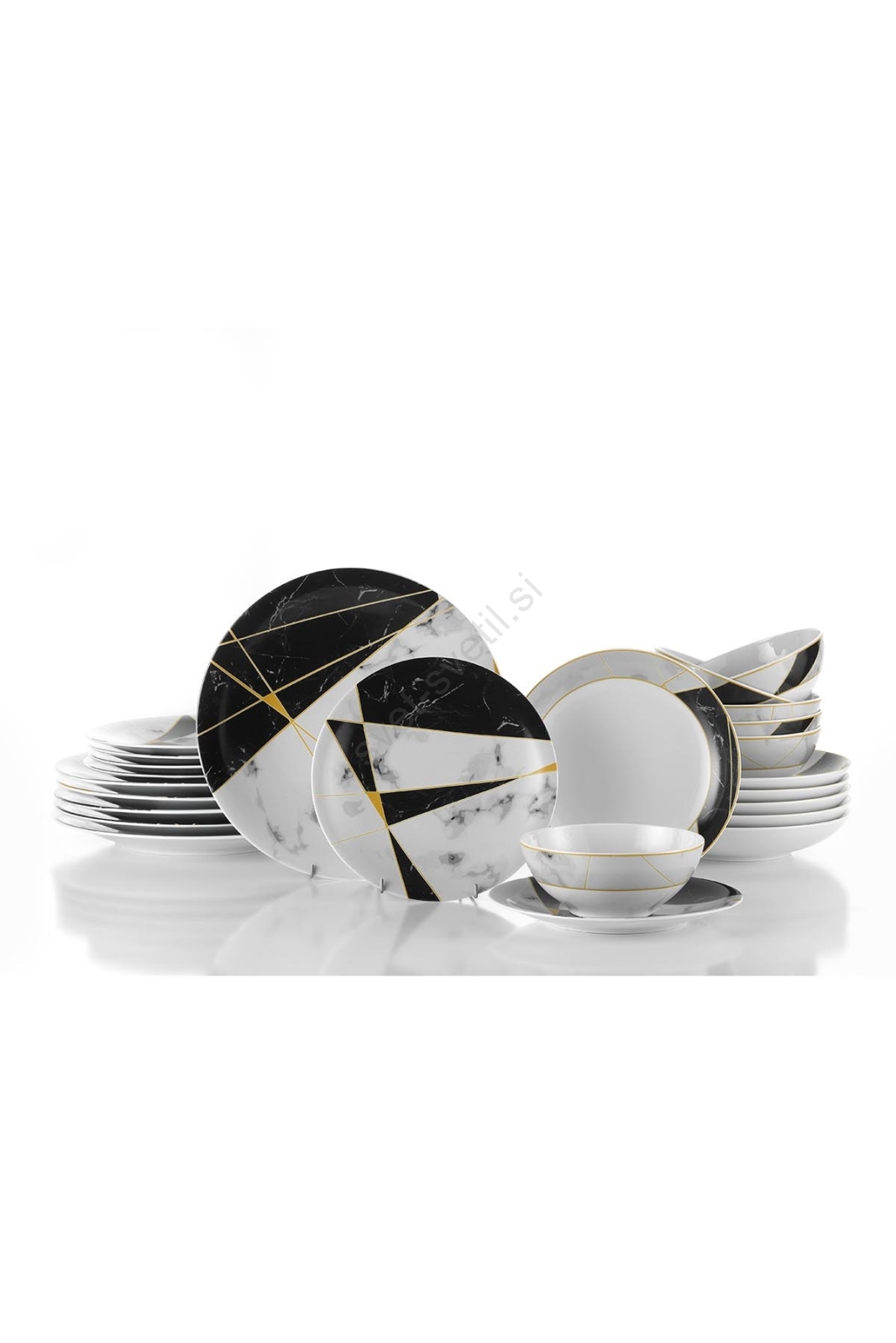 24-delni jedilni servis črna/bela/zlata/porcelan