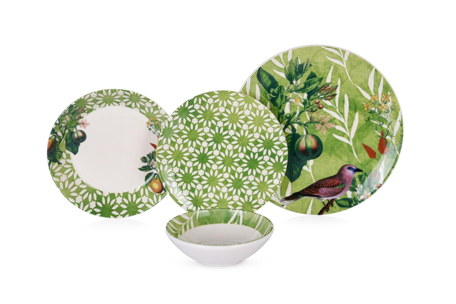 24-delni jedilni set iz keramike v zeleni in beli barvi