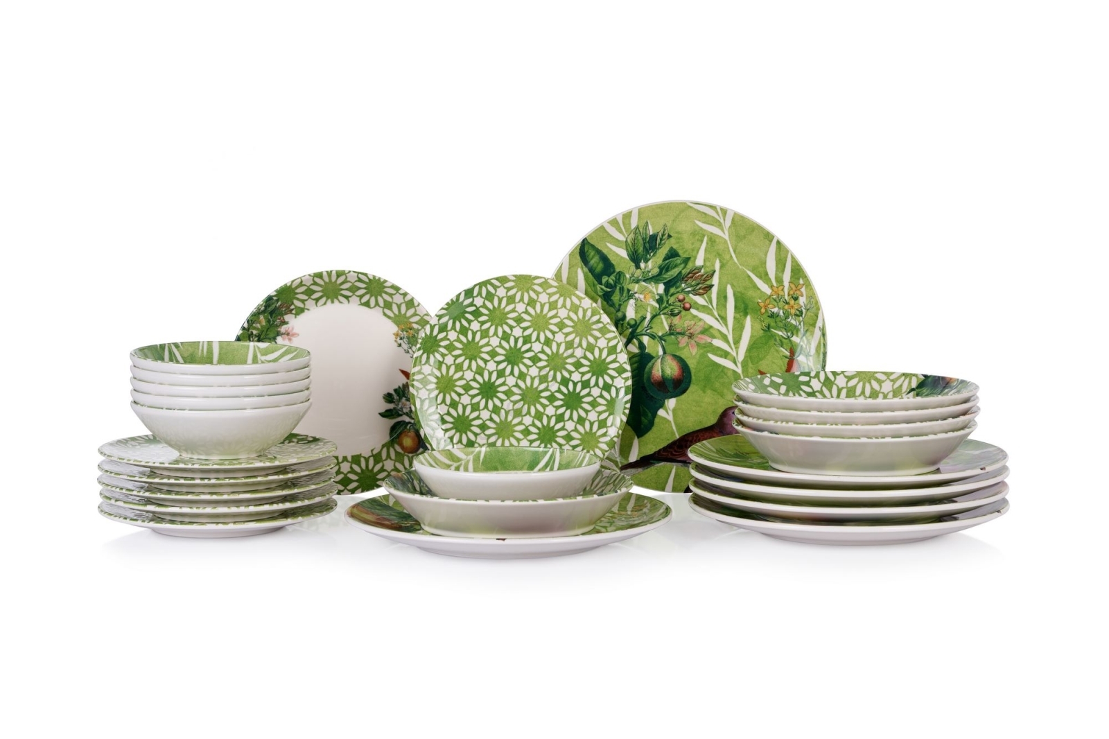 • 24-delni jedilni servis iz porcelana v beli in zeleni barvi