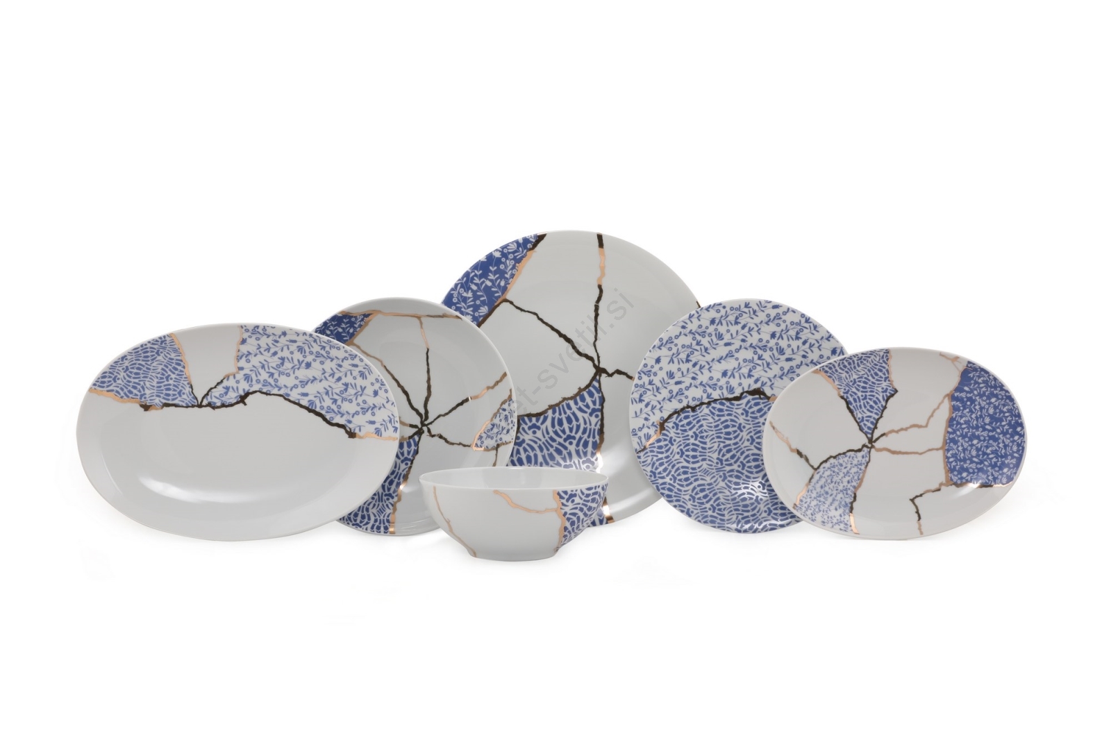 28-delni jedilni set v beli/zlati/modri barvi, iz porcelana