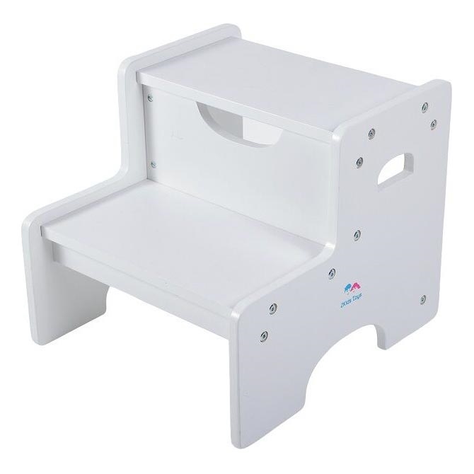 2Kids Toys - Leseni stolček s stopnico v beli barvi