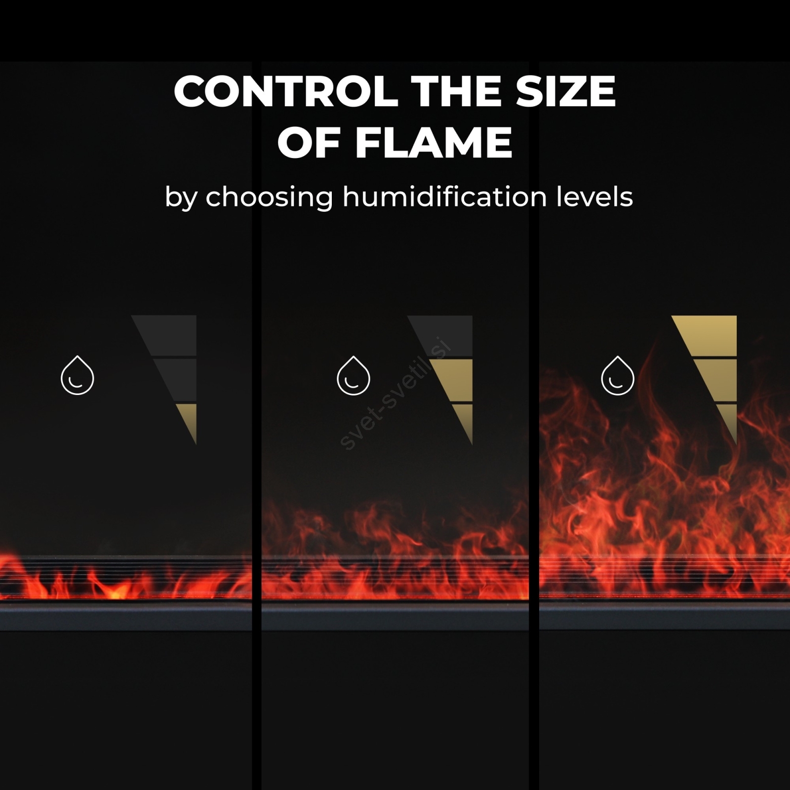 • Ima dekorativen učinek „plamena“ zaradi LED-osvetlitve in izparevanja, ki ustvarja vzdušje podobno pravemu ognju, vendar brez plamena in dima.