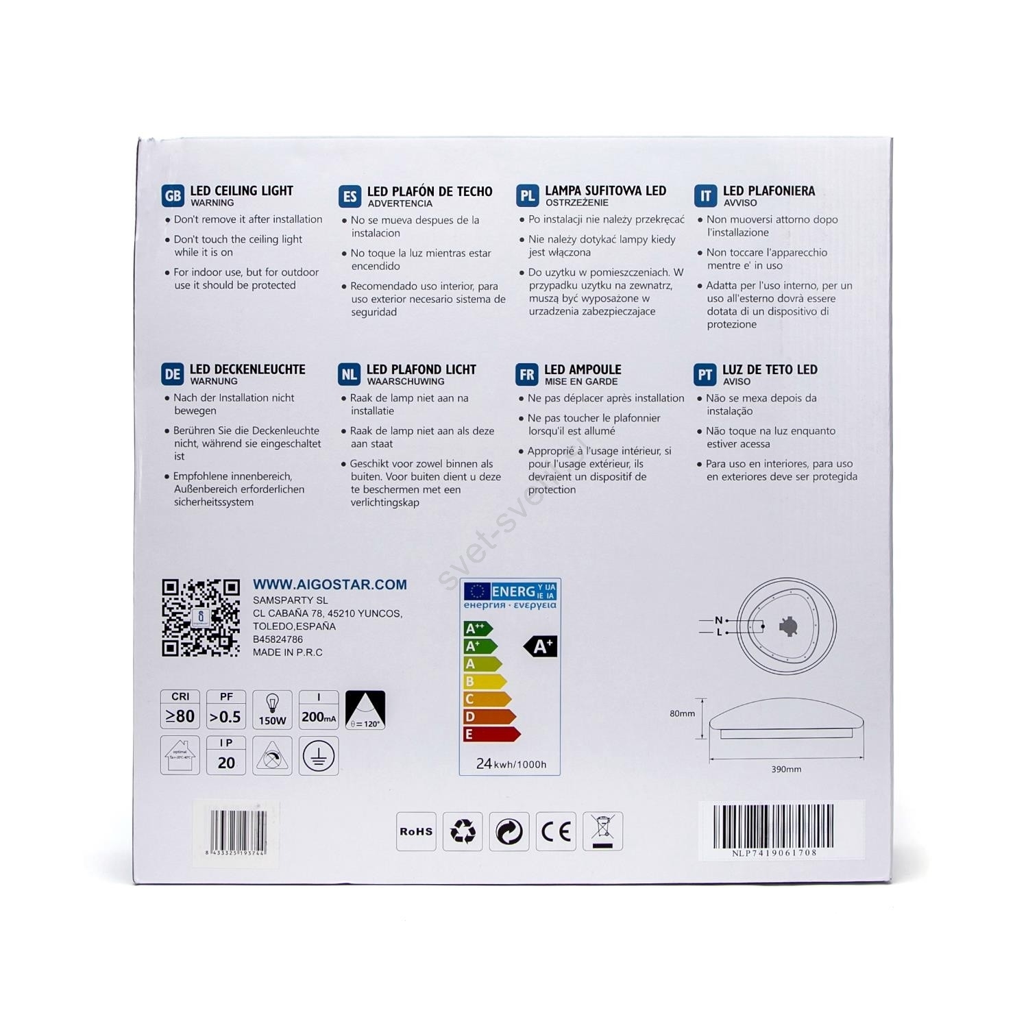 Aigostar - LED Stropna svetilka s senzorjem LED/24W/230V 3000K