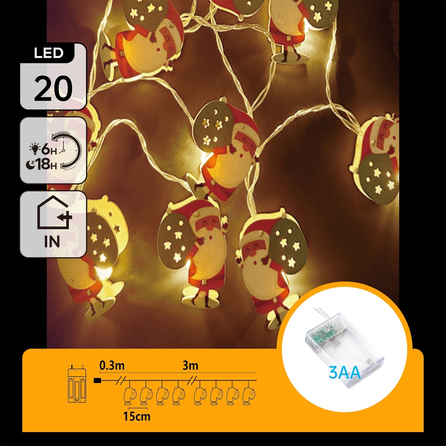 Aigostar - LED svetlobni niz 20xLED/3xAA 3m topla bela Božiček