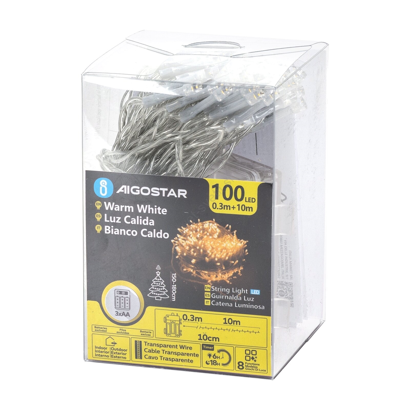 • Aigostar - LED zunanji niz 100 LED, 8 funkcij, 3×AA, 10,3 m, IP44, topla bela