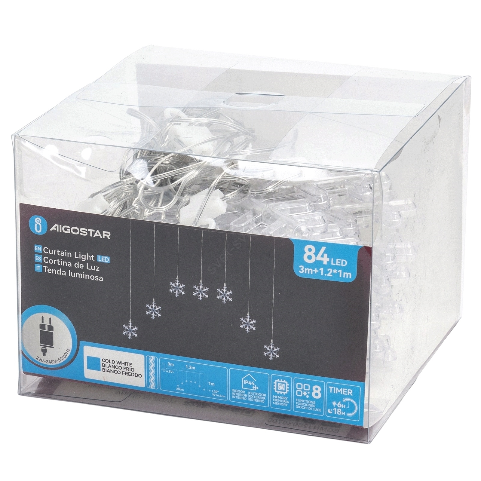 Aigostar - zunanji LED niz 84xLED/8 funkcij 1,2x1m IP44 hladno bela snežinke
