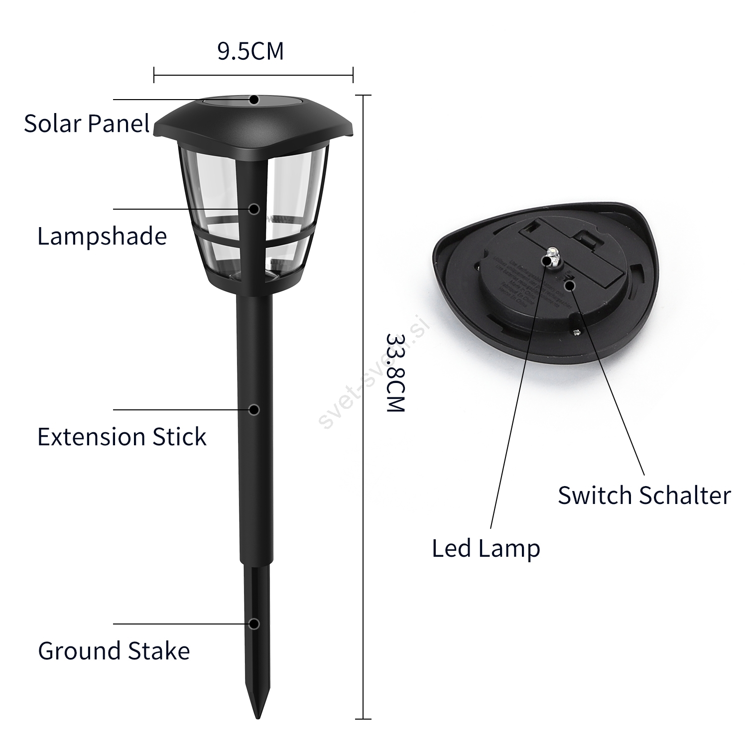 Aigostar - Komplet 12x LED solarnih svetilk LED/0,06W/2V 33,8 cm 6500K 100 mAh IP44 črne