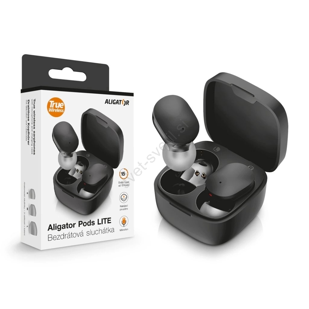 Aligator TWS05 - Brezžične slušalke Pods LITE 200 mAh + 2x 30 mAh IP30 črne