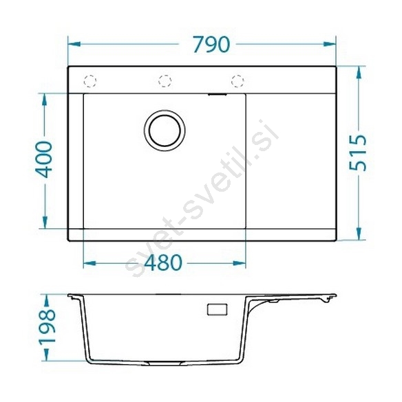 • Vsebina pakiranja: granitno korito, montažne sponke, košarasti ventil 3 1/2, sifon s priključkom za pomivalni stroj.