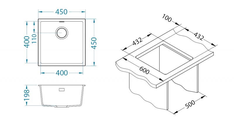 • Vsebina paketa: granitni pomivalnik, pritrdilni elementi, košasti ventil 3 1/2, sifon s priključkom za pomivalni stroj.