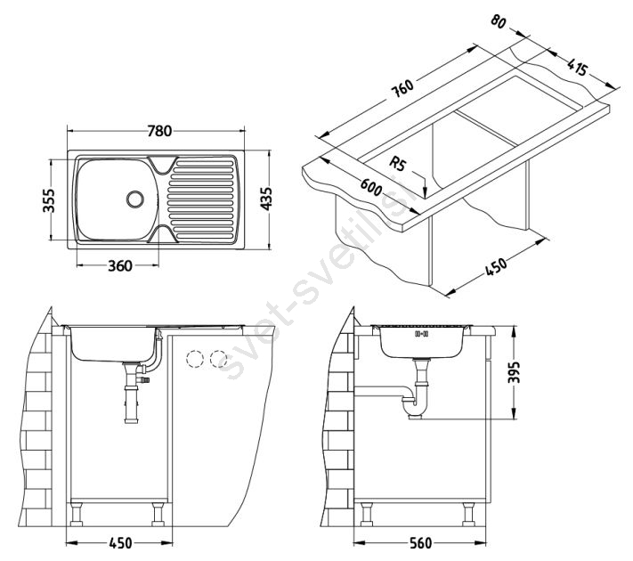 • Vsebina pakiranja: nerjaveče pomivalno korito, pritrdilni elementi in tesnila, odtok 1 1/2", sifon z odcepom za pomivalni stroj, čep, kuhinjska pipa, priključne cevi, montažni paket.
