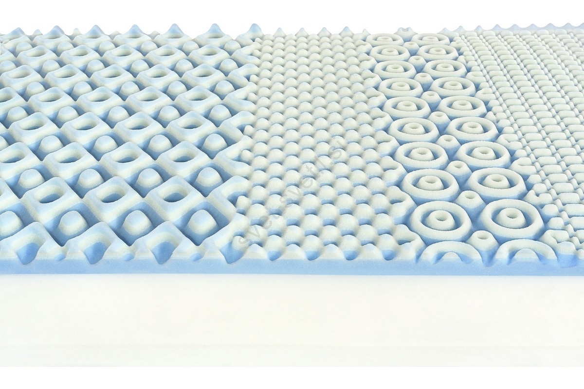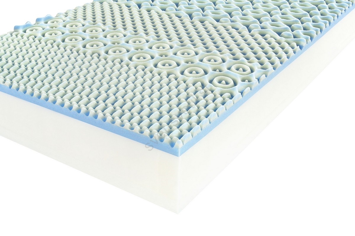 • Vrhunska zgornja plošča s 3D spominsko peno v kombinaciji s hibridno, hladno oblikovano peno – vključno s 7-connim wellness profilom, spodnji sloj pa predstavlja Flexi peno, hladno oblikovano z masažnim profiliranjem.