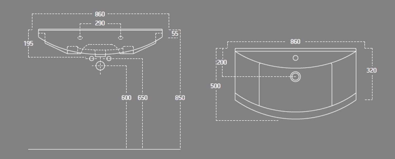 • Keramičen umivalnik dimenzij 86x50 cm.