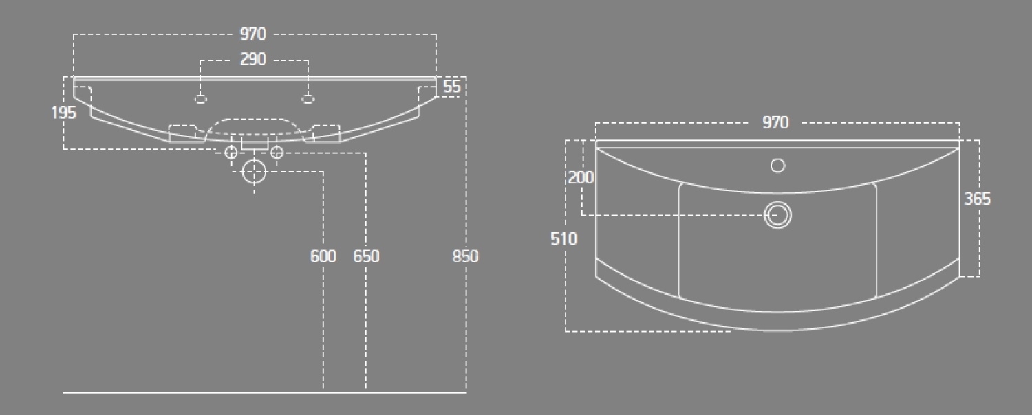 • Njegove dimenzije so 970 x 510 mm in je na voljo v beli barvi.