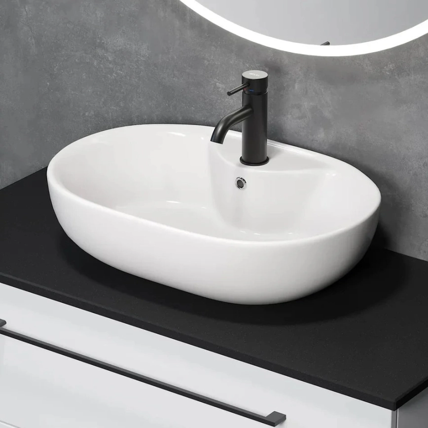 • Umivalnik je zasnovan za namestitev na pult, kar omogoča prilagodljivo namestitev in kombiniranje z različnimi vrstami kopalniških pultov.