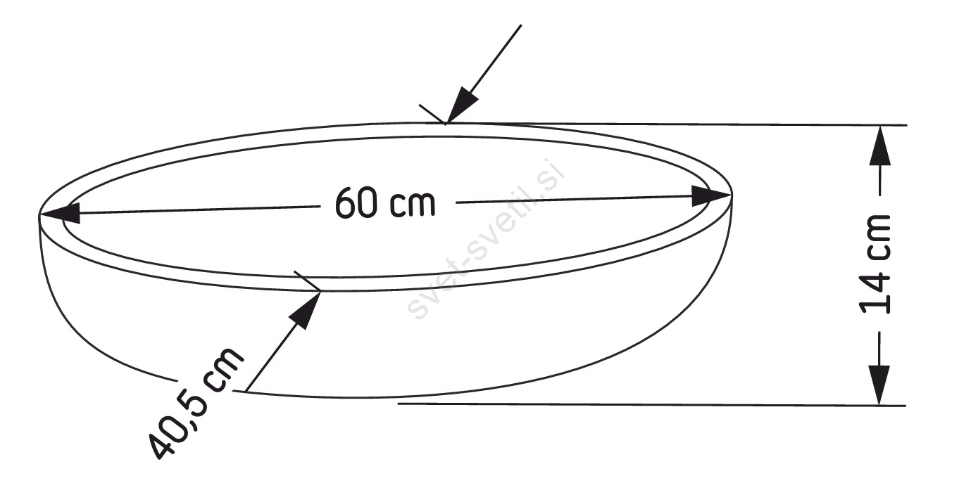 • Ima ovalno obliko z nežnimi, zaobljenimi linijami.