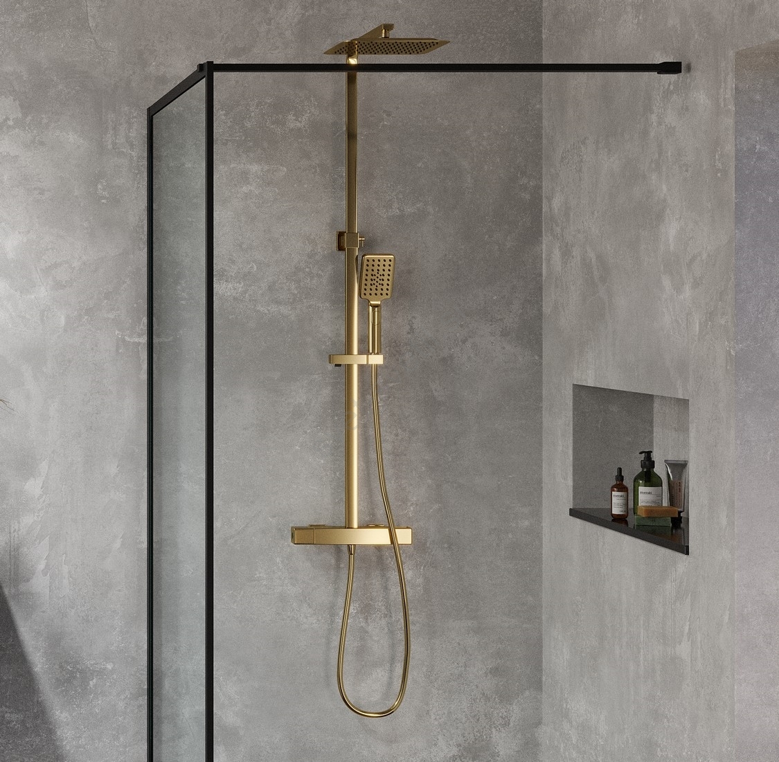 Komplet za prho z termostatsko baterijo NAESBY, brušena medenina