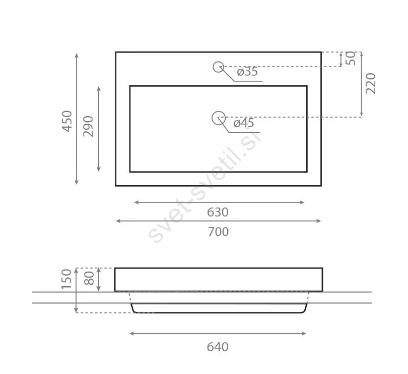 • Embalaža vsebuje umivalnik brez sifona in pipe.