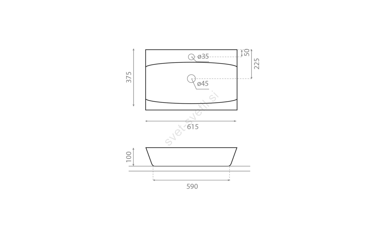 • Embalaža vsebuje umivalnik brez sifona in pipe.