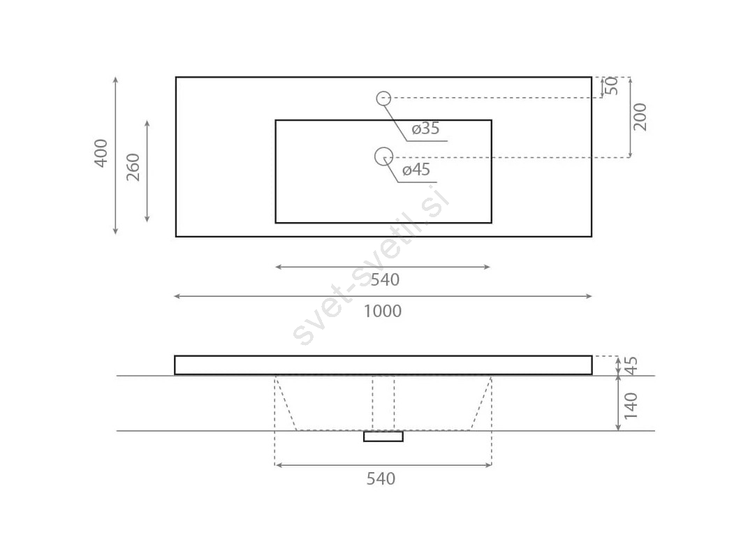 • Umivalnik je mogoče delno vgraditi pod pult.