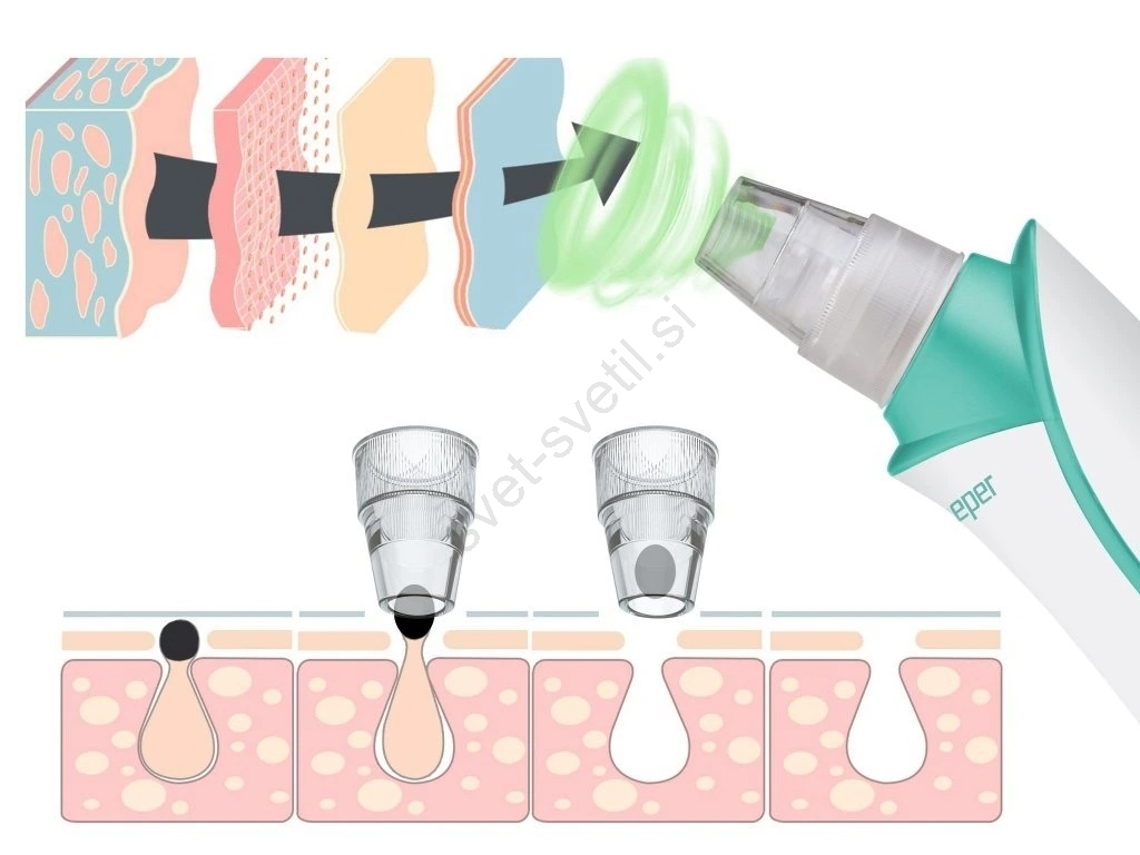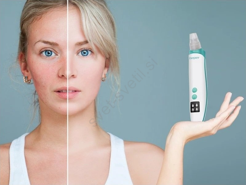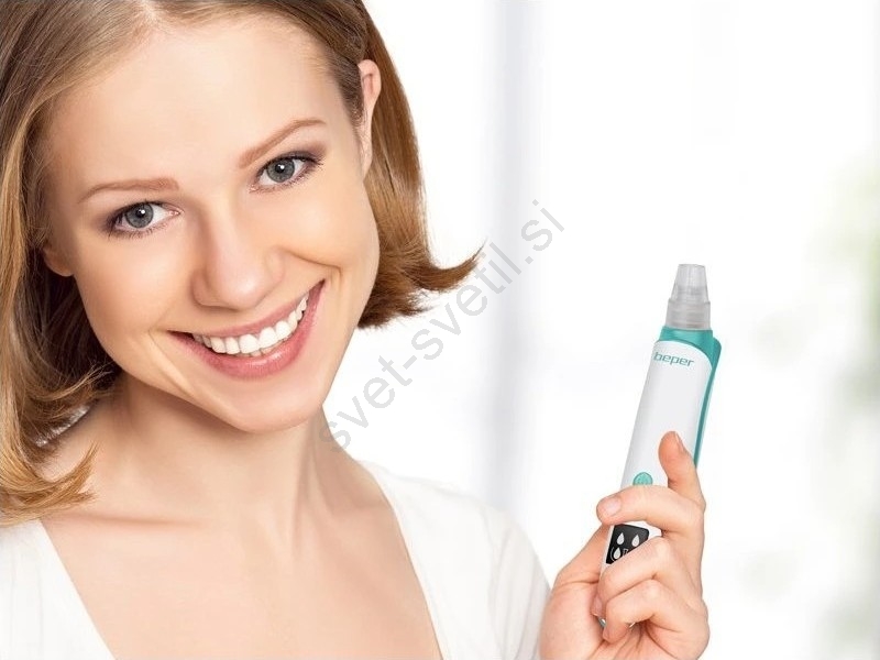 • Beper je kompakten vakuumski čistilec por, ki pomaga pri globinskem čiščenju por in odstranjevanju črnih ogrcev z nežnim podtlakom.