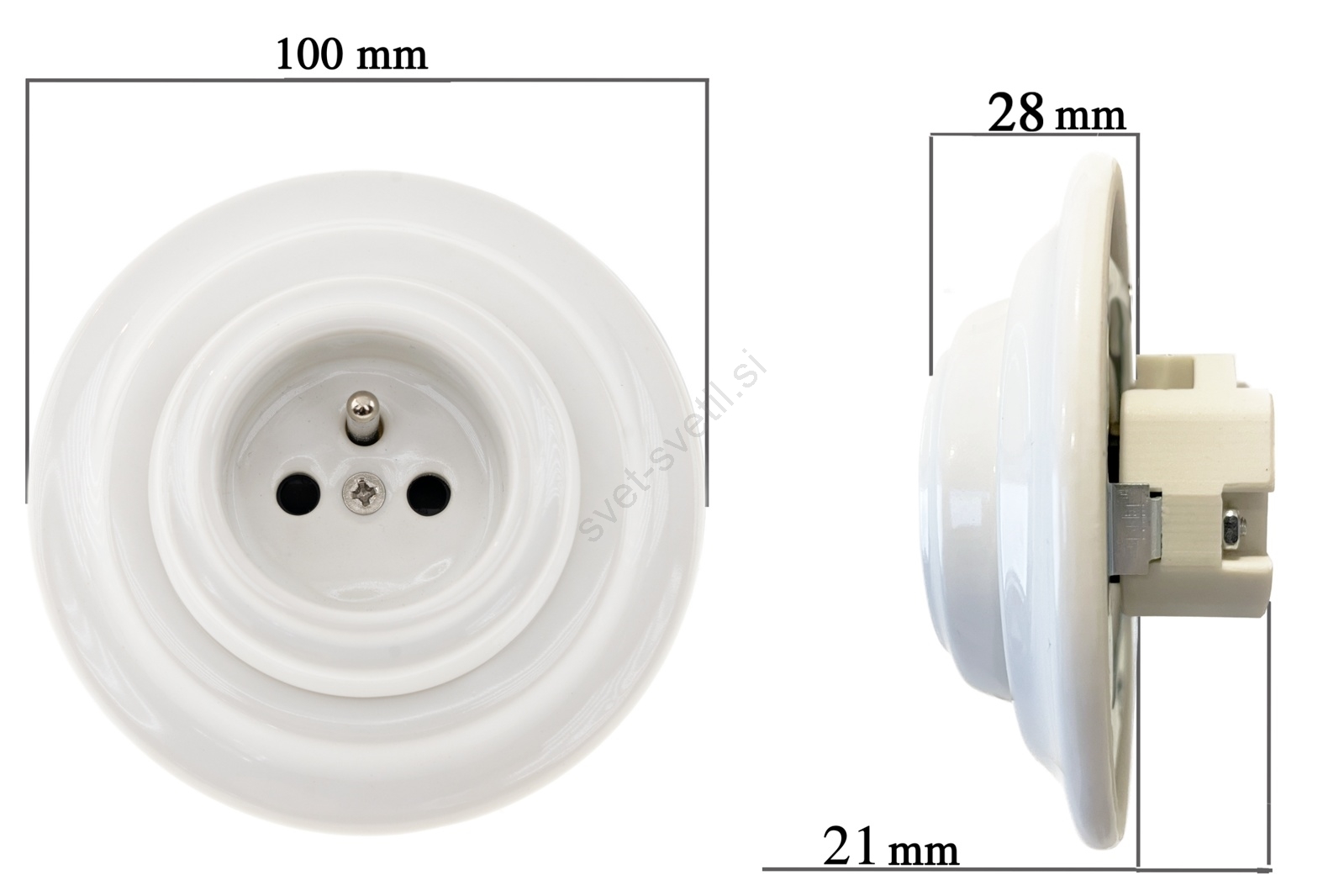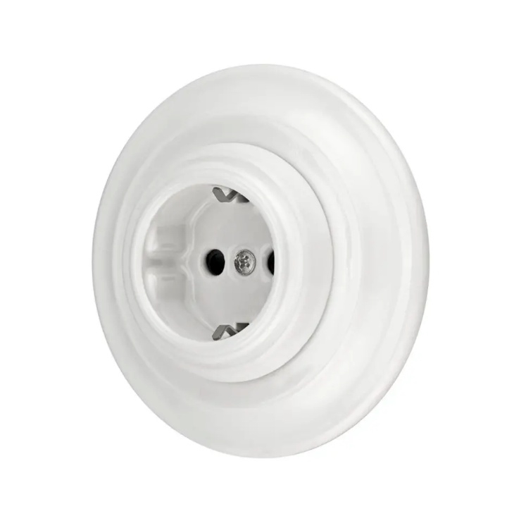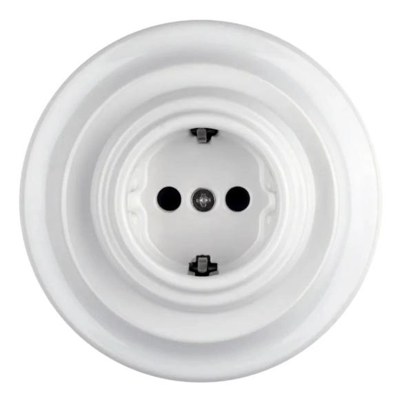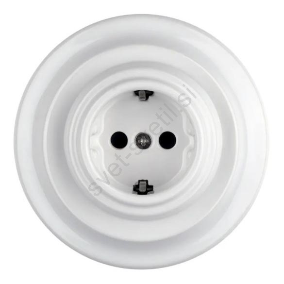 Bohemia-Design - Porcelanasta retro stenska vtičnica z okvirjem SCHUKO 250V/16A, bela