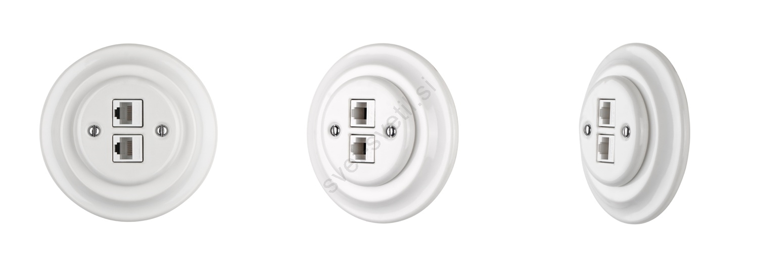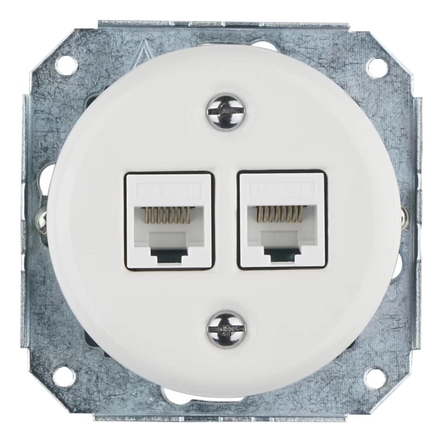 Bohemia-Design -Porcelanasta retro Ethernet vtičnica brez okvirja 2x CAT5e bela
