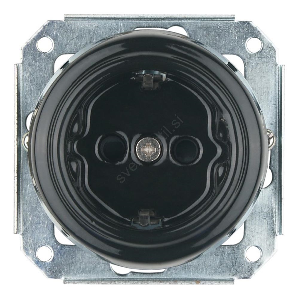 Bohemia-Design - Porcelanasta retro stenska vtičnica brez okvirja SCHUKO 250V/16A, črna