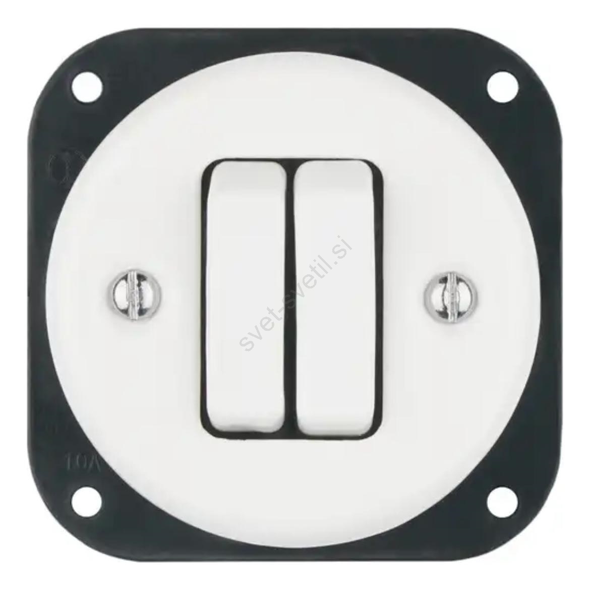 Bohemia-Design - Porcelanasto retro dvojno stikalo brez okvirja, št. 6+6, belo