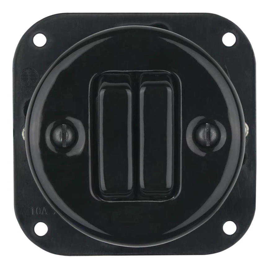 Bohemia-Design - Porcelanasto retro dvojno stikalo brez okvirja št. 6+6, črno