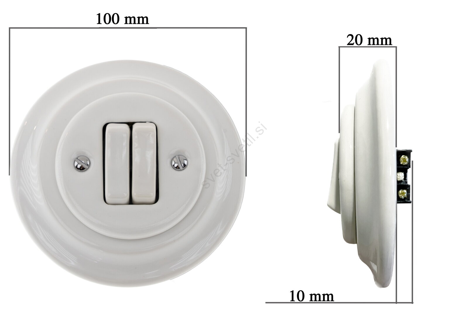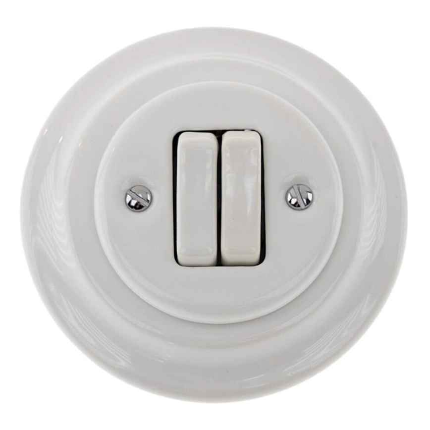 Bohemia-Design - Porcelanasto retro dvojno stikalo z okvirčkom št. 5, belo