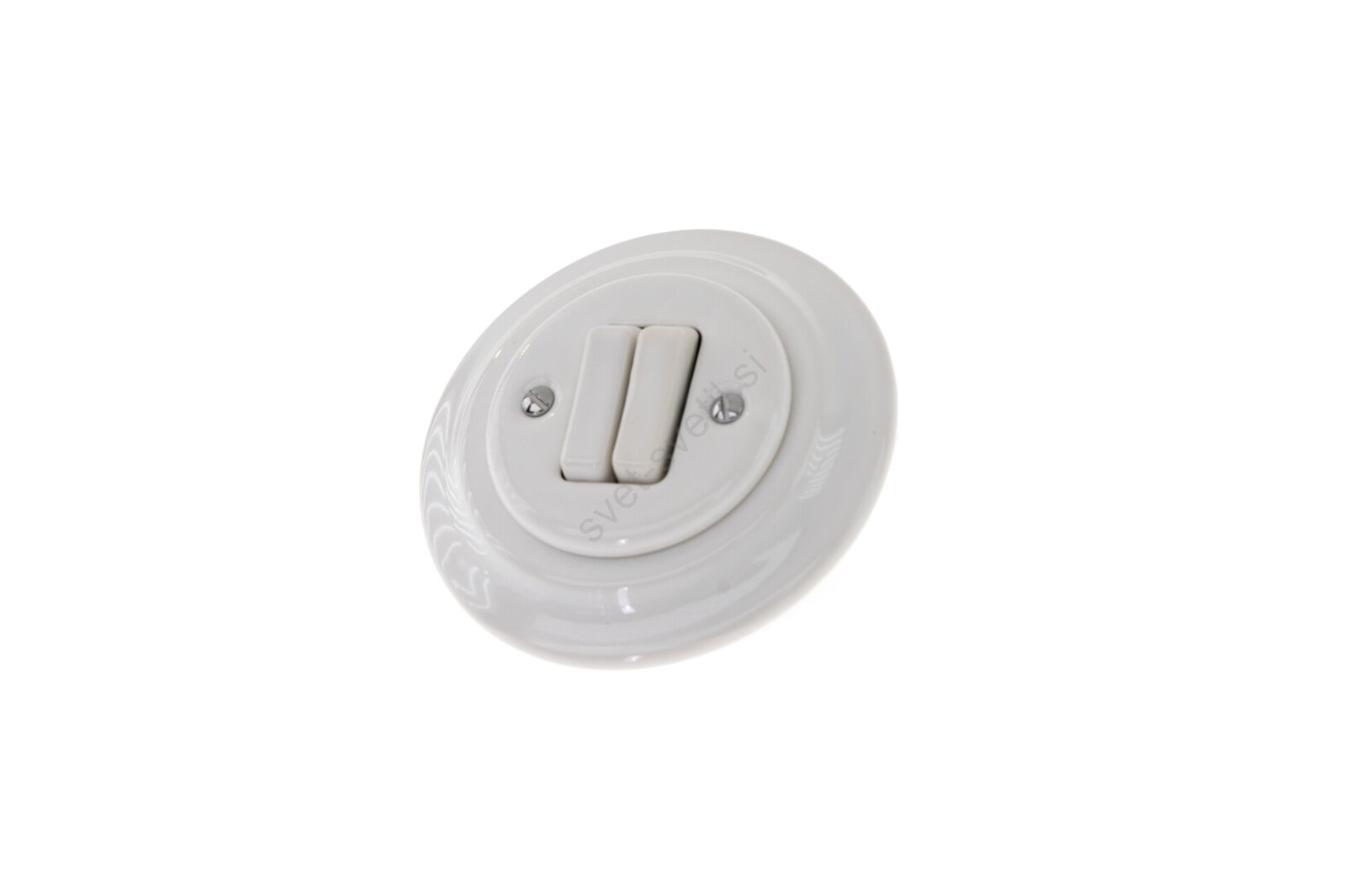 Bohemia-Design - Porcelanasto retro dvojno stikalo z okvirjem, št. 6+6, belo