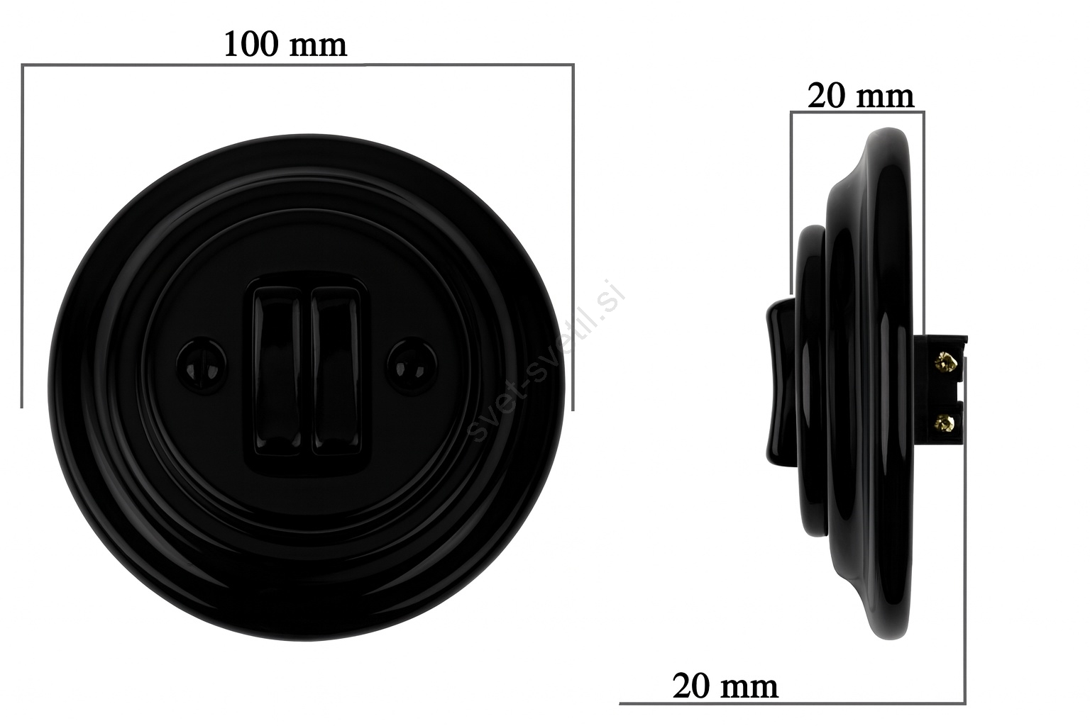 Bohemia-Design - Porcelansko retro dvojno stikalo z okvirjem št. 6+6, črno
