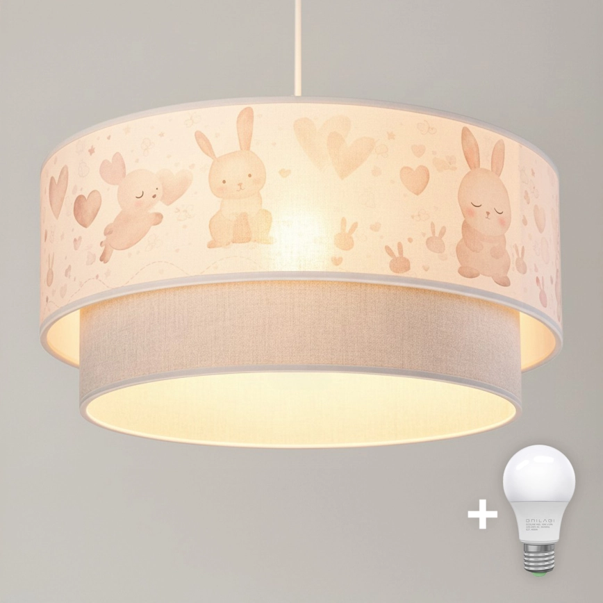 • Brilagi - LED otroška stropna svetilka na vrvici BOBO 1xE27/10W/230V premer 40 cm kremna/rožnata/z motivom zajčkov
