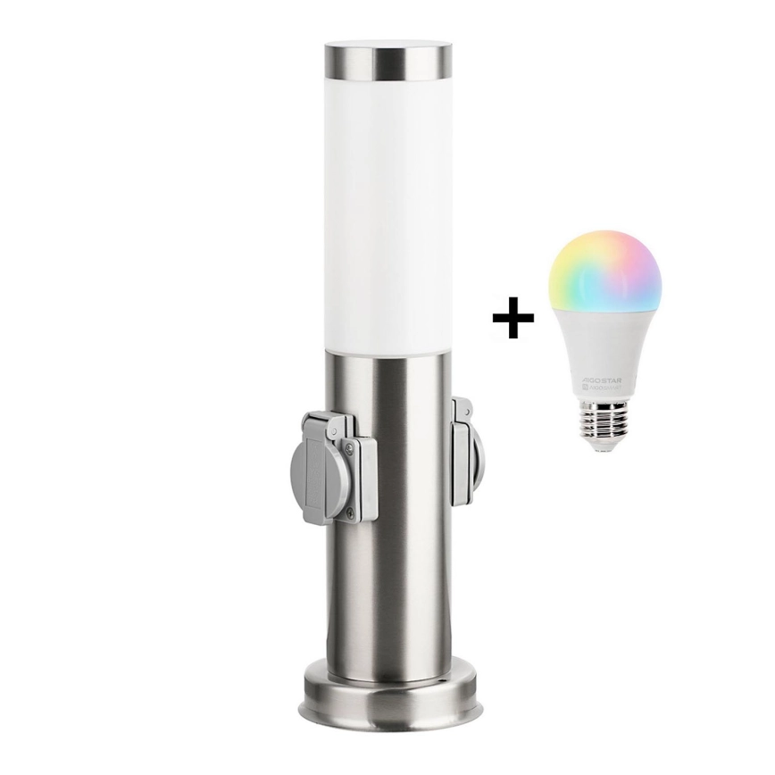 • Brilagi - LED RGBW zatemnjiva zunanja svetilka z dvema vtičnicama 1xE27/15W/230V 2700-6500K IP44 40 cm mat krom