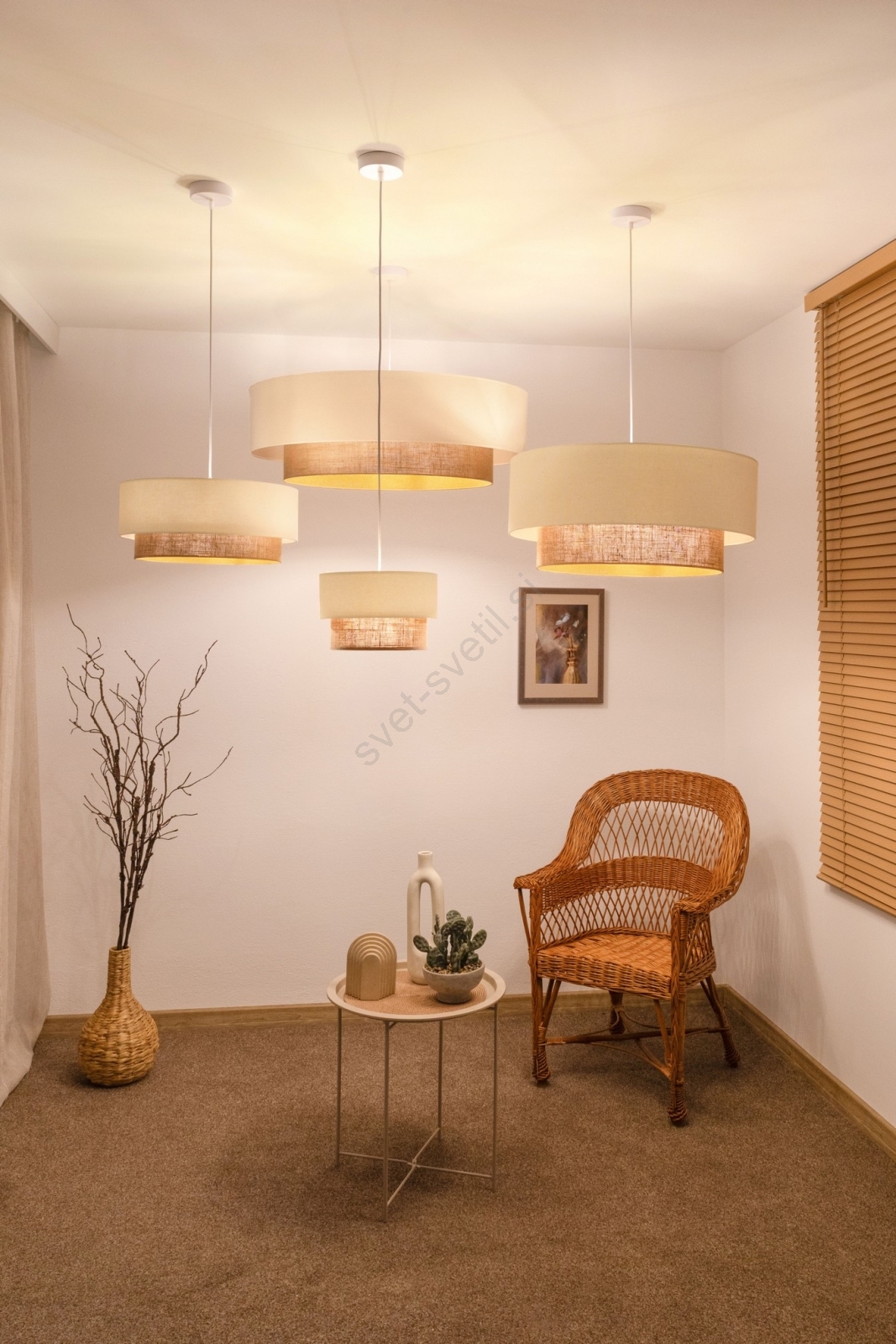Juta je naraven in okolju prijazen material, ki se odlično vklaplja v trende trajnostnega oblikovanja. Luči iz jute združujejo surovo preprostost in naravno eleganco ter v vsak prostor ustvarjajo topel in prijeten ambient. So idealna izbira za tiste, ki cenite okolju prijazne rešitve in želite v svoj dom vnesti elemente, bližnje naravi. Z izbiro luči iz jute poudarite slog, harmonijo in skrb za okolje.