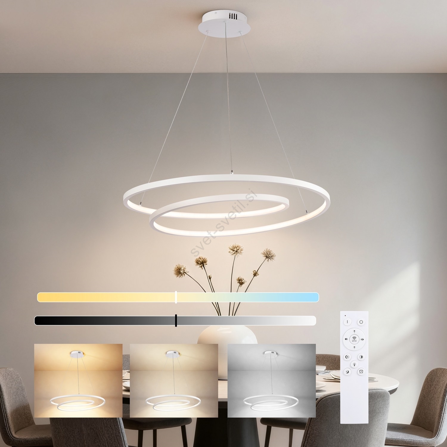 Brilagi - Zatemnljiv viseči lestenec na kablu TWISTER LED/75W/230V 3000-6000K Ø 70 cm bela + daljinski upravljalnik