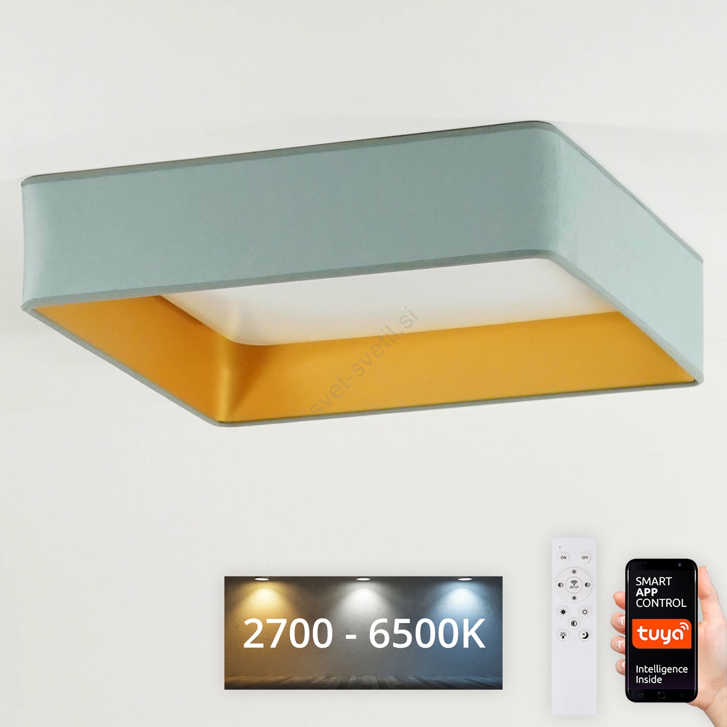• Brilagi - LED stropna svetilka VELVET SQUARE SMART z zatemnitvijo LED/36W/230V 60x60 cm 2700-6500K Wi-Fi Tuya + z daljinskim upravljalnikom mentolna