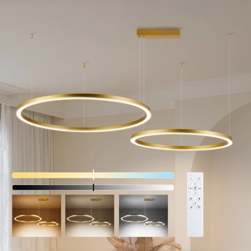 • Brilagi - Zatemljiv LED lestenec na jeklenem kablu PORTOFINO LED/98W/230V 3000-6000K zlata + daljinski upravljalnik