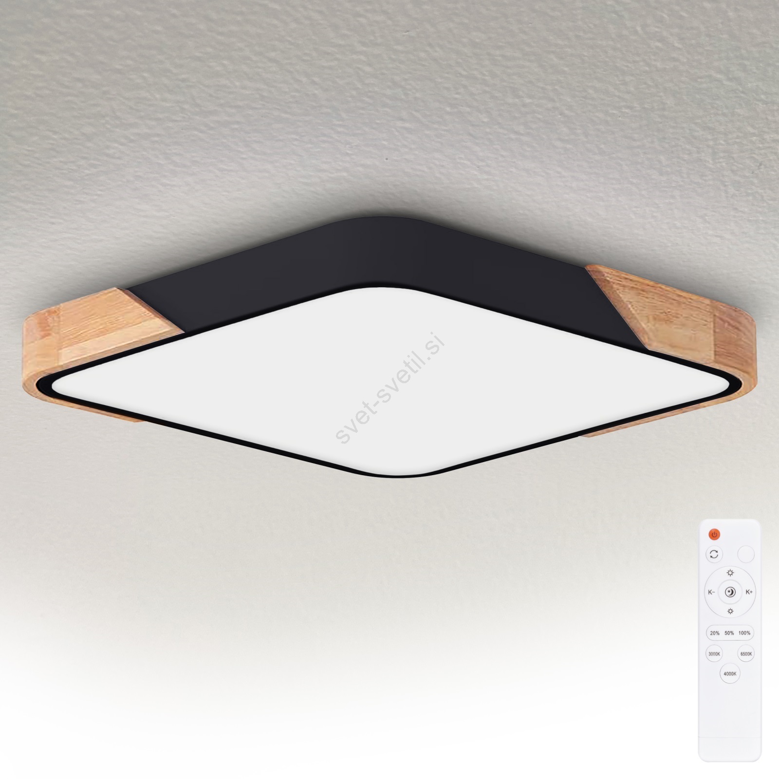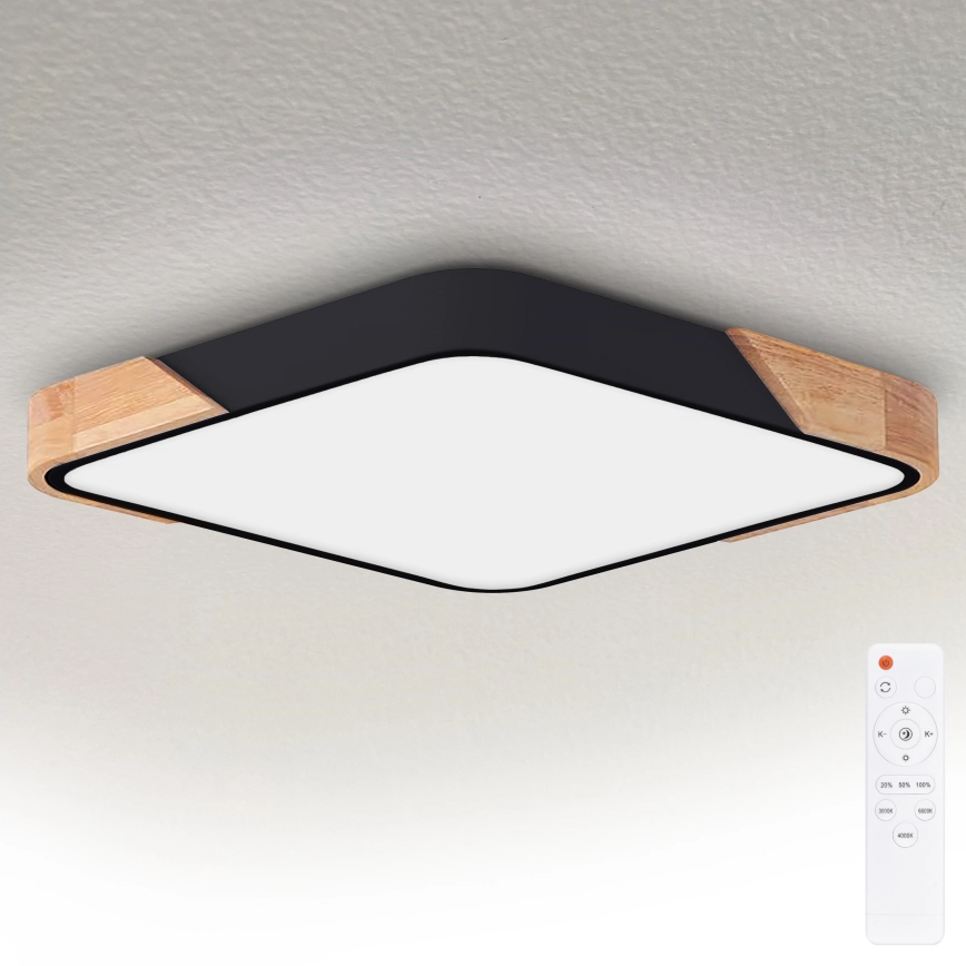 Brilagi - Zatemnjevalna LED stropna svetilka PILANA LED/60W/230V 3000-6500K hrast/črna 56x56 cm + daljinski upravljalnik