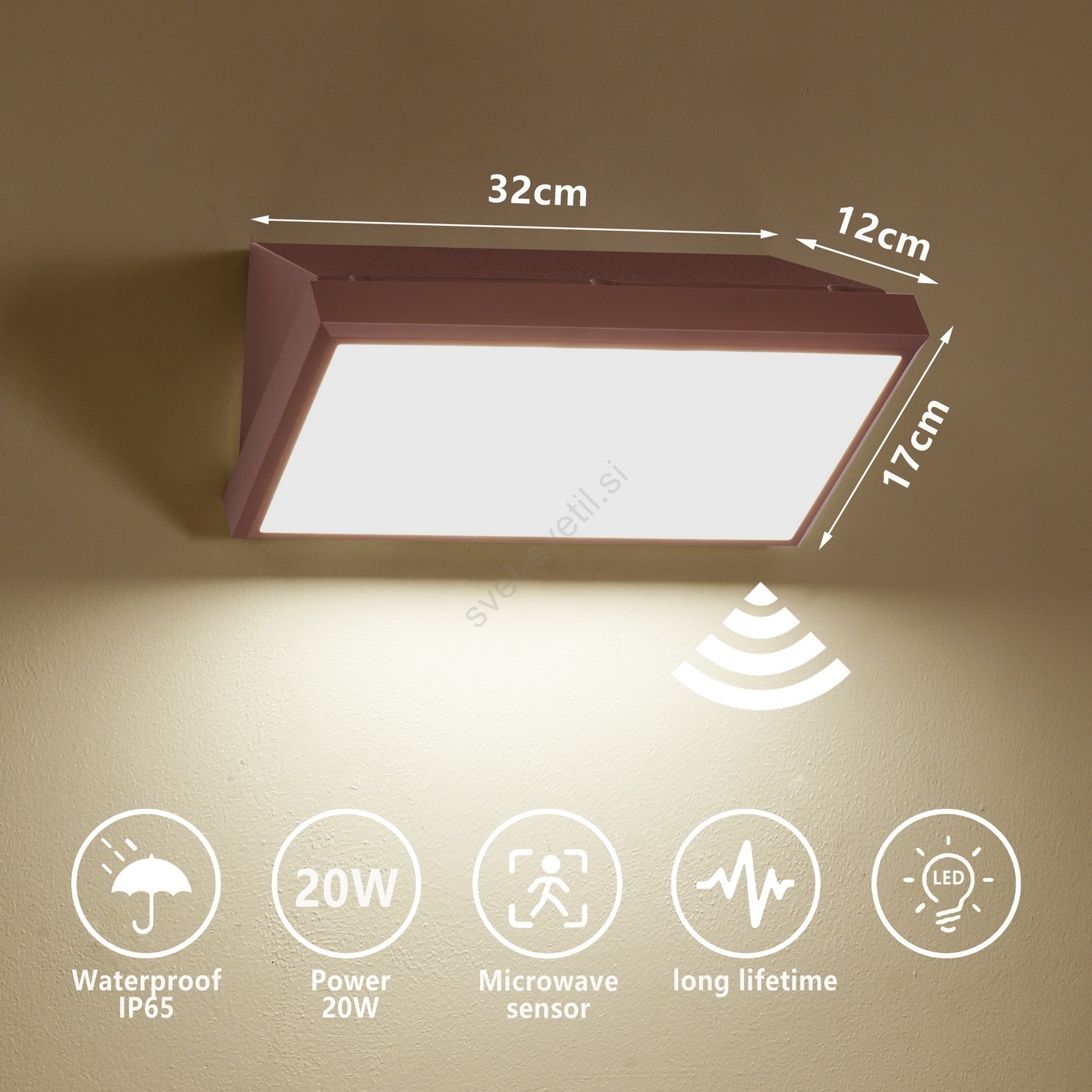 Brilagi - LED zunanja stenska svetilka s senzorjem TRIANGLE LED/20W/230V, rjava, IP65