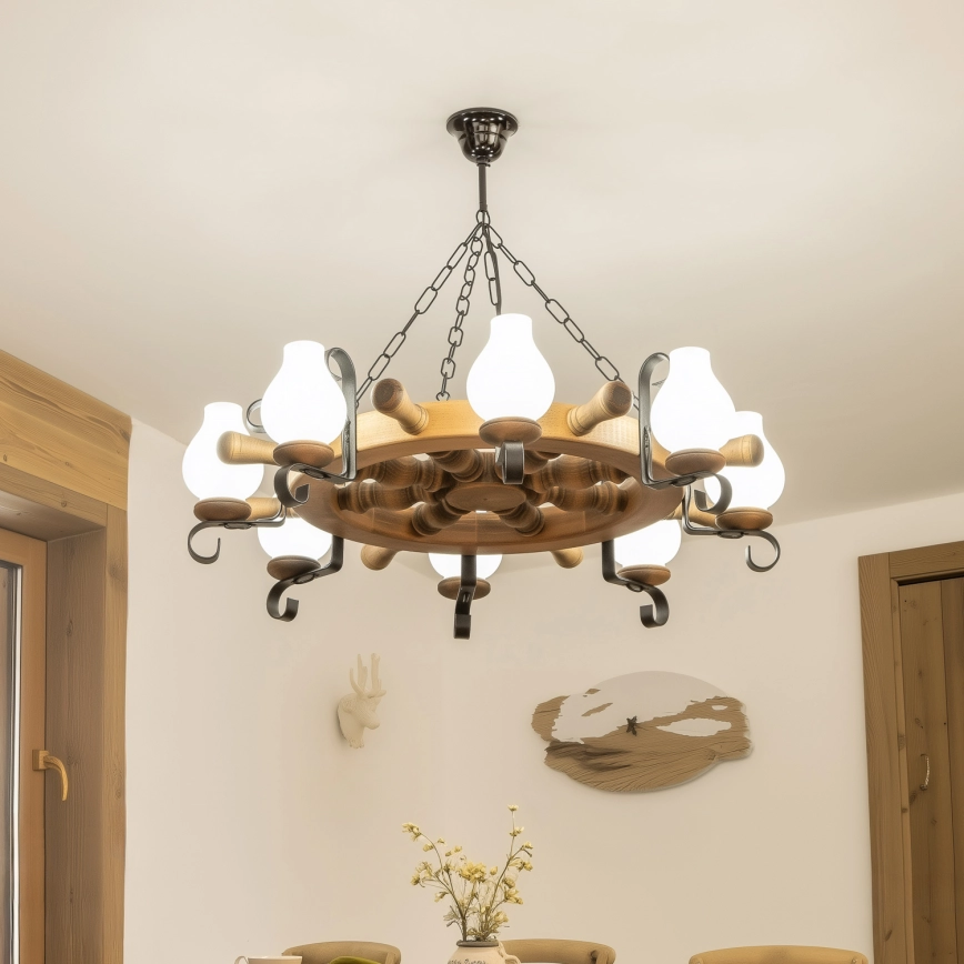 • Brilagi - Lestenec na verigi TIMONA 8xE14/40W/230V, premer 70 cm, bukev
