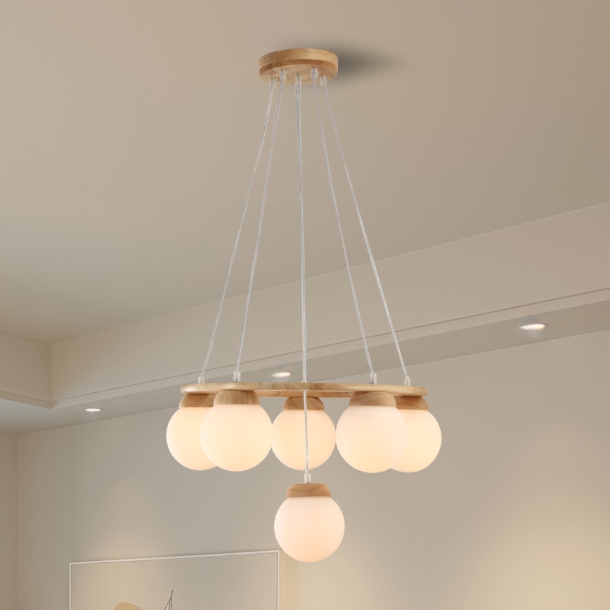 Brilagi - Viseči lestenec na kablu VISBY WOOD 6xE27/60W/230V Ø 58 cm les je značilen lep in funkcionalen dizajn. Za svetilko je primerna žarnica z vznožkom E27. Tukaj lahko kupite ostale žarnice po ugodnih cenah.