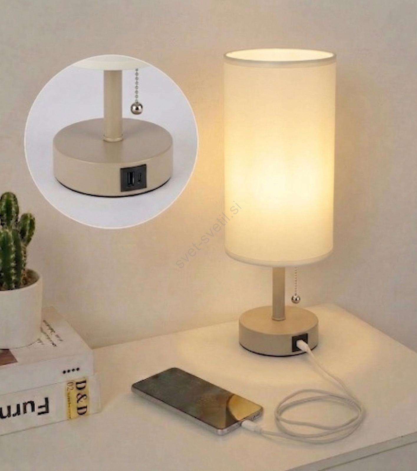 • Brilagi - Namizna svetilka z USB-priključkom TABLON 1xE27/25W/230V bežna/kremna